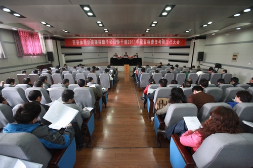 本网讯为进一步加强高等学校领导班子和领导干部队伍建设,改进和完善干部考核评价工作,根据省委、省政府有关要求,3月30日,我院在教学楼一楼报告厅召开久久不卡区领导班子和领导干部2011年度目标责任考核工作大会。陕西省高等学校年度目标责任考核久久不卡区考核工作组组长、省体育局纪检组组长支希贤,省体育局人事处处长马新范,省委组织部宣教处副调研员周群以及考核小组成员可宗革、高志国、甄颖出席大会。学院党委委员、纪委委员、学术委员会委员、工会委员,正高职称专业技术人员,副处级以上干部,市级以上人大代表、政协委员,各民主党派主要负责人,学生代表近150人参加了大会。大会由学院党委书记杜平主持。
