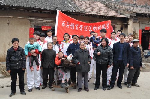 体育教育系2011级通过广播站、黑板报、校园文化橱窗等形式宣传雷锋精神,并对沣峪校区的教学楼、场馆及环境卫生死角进行了清洁,使校区环境焕然一新。运动训练系2011级组织志愿者赴校区周边的沣峪口村开展了扶贫帮困活动。志愿者们看望和慰问了沣峪口村的孤寡老人和智障儿童,帮助老人打扫庭院,整理家务,并为他们送去了慰问品,献上了同学们的爱心。