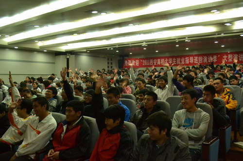 11月15日,由西安市人才服务中心、FM101.1《张持有道》栏目、西安毕业生就业市场主办,我院就业指导中心承办的陕西省首档广播职场就业节目《张持有道》高校巡回演讲会暨2011西安高校大学生就业指导巡回演讲季大型演讲会久久不卡区站在我校教学楼一楼报告厅举行。Ptt国际职业培训师、陕西广播电视台节目主持人张持为同学们带来了一场主题为《找份工作去恋爱》的精彩讲座。