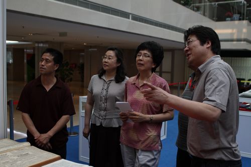 中国红色体育博物馆负责人史进向参观人员介绍馆藏资料
