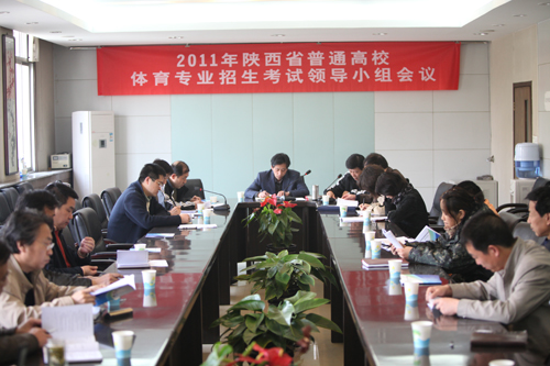 根据省招办安排,我省2011年普通高校体育专业招生考试于4月9日至16日举行,来自全省十一个市(区)的7950名考生将分为六个大组进行报名考试。今年体育普招考试测试工作仍由我院承担。为切实做好这项工作,陕西省考试管理中心4月6日下午在我院召开了领导小组会议,陕西省考试管理中心副主任辛华,普招处副处长刘金磊、王琼,我院党委副书记苏义民及各小组负责人出席了会议。会议由苏副书记主持。