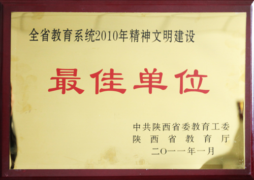近日,陕西省教育工委、教育厅根据2010年年初与各市区、高校签订的精神文明建设目标任务书要求,通过认真检查、交流评比,决定授予包括我院体育艺术系在内的全省90个教育系统处级单位2010年全省教育系统精神文明建设工作“最佳单位”荣誉称号。