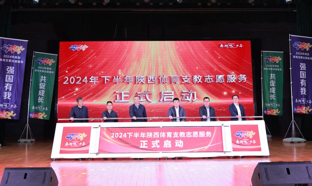 本网讯 10月13日上午,2024年下半年陕西省体育支教志愿服务启动仪式在我校艺术馆大礼堂举行。省体育局党组成员、副局长邹军,省教工委委员、省教育厅副厅长吴振磊,共青团省委副书记惠旋,我校校长李富生、党委副书记张卫国出席并共同启动2024年下半年陕西省体育支教志愿服务活动。由我校牵头来自全省8所高校的优秀体育支教志愿服务队员以及省体育局、教育厅、团省委机关负责同志,陕西体育支教派出8所高校领导,10个支教地市体育局领导、10个支教县区教育体育局领导共同参加启动仪式。