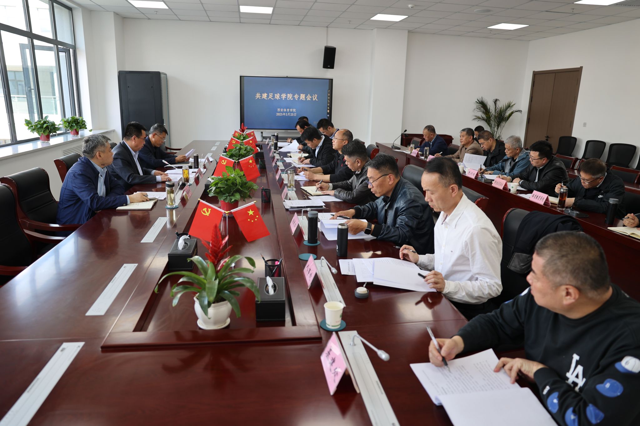 本网讯 为扎实推进与中国足协共建足球学院,3月25日,校长李富生主持召开共建足球学院专题会议,党委副书记、纪委书记、监察专员杨芳乾,副校长张葆欣出席,相关部门负责人、足球学院负责人参加会议。