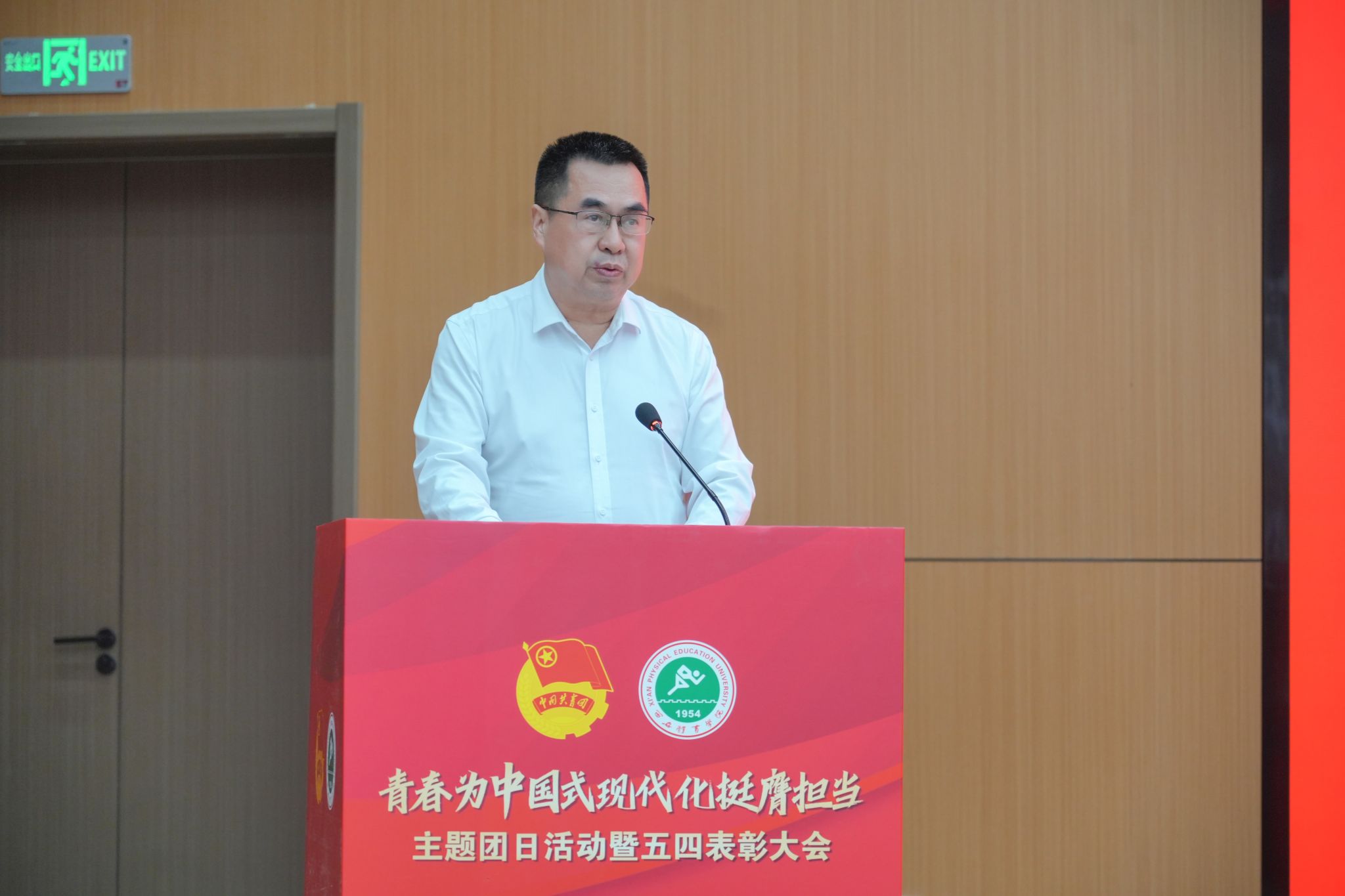 马海涛代表学校向受表彰的同学和集体表示祝贺,向全校广大团员青年致以节日的诚挚问候和美好祝愿。希望西体青年坚定信念、志存高远,刻苦学习、全面成才,艰苦奋斗、勇于实践,以荣誉为起点,继续奔跑、永不止步。
