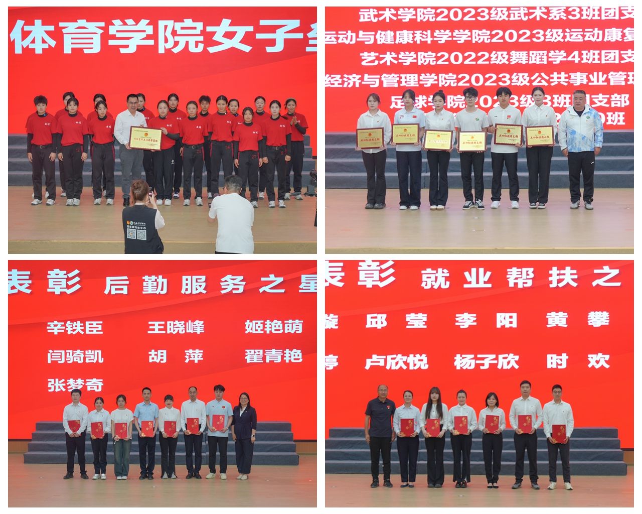 与会领导分别为2024至2025年度久久不卡区西体青年五四奖章集体、五四红旗团委,西体青年五四奖章、优秀共青团干部、优秀共青团员以志愿者优秀集体和个人颁奖。体育教育学院团委书记宗月民、青年教师代表汤自龙、竞技体育学校殷腊梅作为获奖代表进行了发言。
