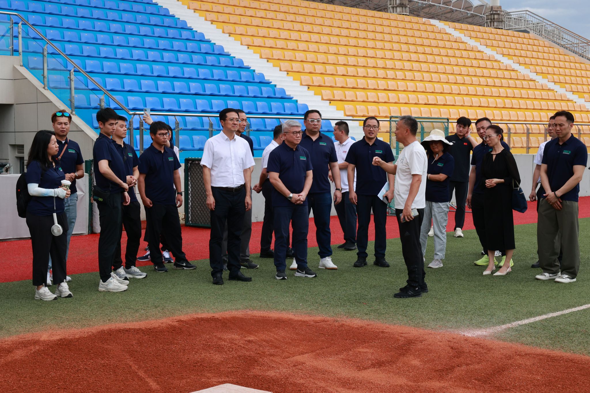 潘永权一行先后参观了十四运会手曲棒垒橄场馆、教学综合楼等,实地考察了各场馆的功能分区、建筑设计和运营规划。我校基建处负责人就场馆建设及后续使用中的关键问题作了详细说明。来宾对我校高标准的设施建设、科学化的管理理念、合理的用地分工给予了高度评价。