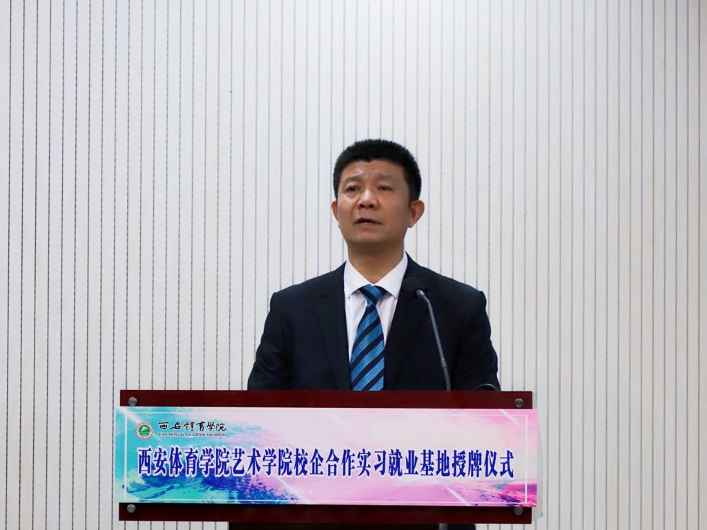 杨占军代表艺术学院对出席本次仪式的领导、嘉宾表示感谢。他简要介绍了艺术学院的基本情况,他谈到,建立就业实习基地是学生培养与社会融合的需要,艺术学院将与各用人单位要深化合作内涵,丰富合作形式,共建实习就业基地,开创实习就业双融合模式,加强毕业生理论与实践融合程度,逐步推进毕业生融入社会的能力,为推进落实党中央“六保”“六稳”工作要求不断努力,开创艺术学院学生就业工作新蓝图!