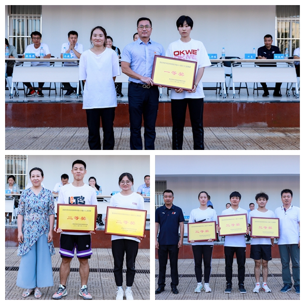 比赛中,评委们本着“公平、公正、公开”的原则从进退场的整齐程度、服装统一整洁,指挥员的精神状态、口令、动作规范性,队列队形的整齐程度、转换方式,以及广播操动作的规范程度等多方面进行考评。经过评审,体育教育1班获得第一名,体育教育11班、6班获得第二名,体育教育2班、8班、特殊教育1班获得第三名。颁奖嘉宾为获奖的集体、个人颁奖,并合影留念。