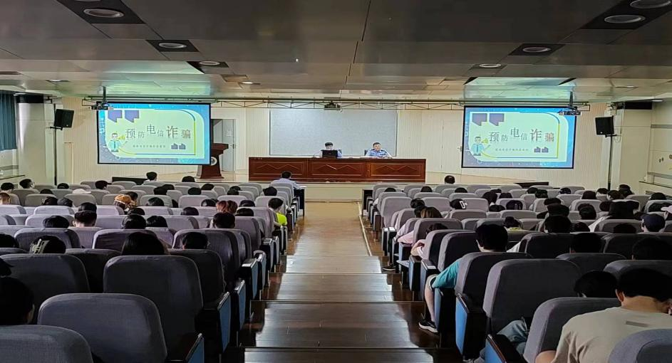 本网讯    为进一步防范网络诈骗,切实保护学生权益,维护校园安全稳定,提高学生“防诈骗”意识,增强“防诈骗”能力,6月7日下午,保卫处联合红缨路派出所开展“电信反诈防诈”主题宣讲活动,各二级学院近300名学生参加活动。本次宣讲由西安市公安局碑林分局刑警队副大队长苏盛警官主讲,红缨路派出所副所长田珂主持。