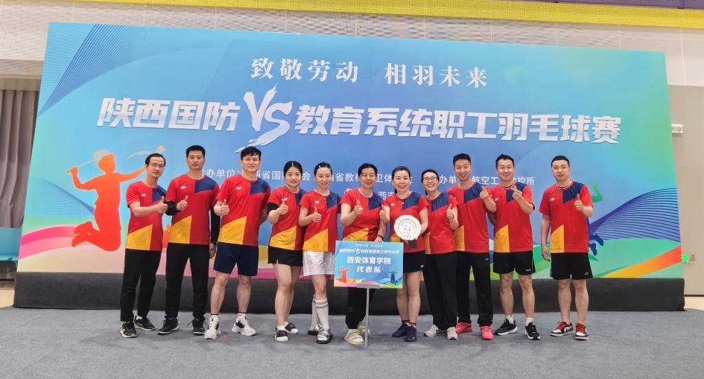 本网讯 2024年4月28日上午,“致敬劳动 相羽未来”陕西国防-教育系统职工羽毛球赛在航空工业自控所职工活动中心圆满落幕。来自国防和教育两个系统16支队伍170余名运动员参加了本次比赛。我校职工羽毛球代表队由校工会牵头,教职工羽毛球协会组织,共派出11人参赛。经过小组赛和淘汰赛的激烈拼杀,最终获得亚军,取得历史最好成绩。